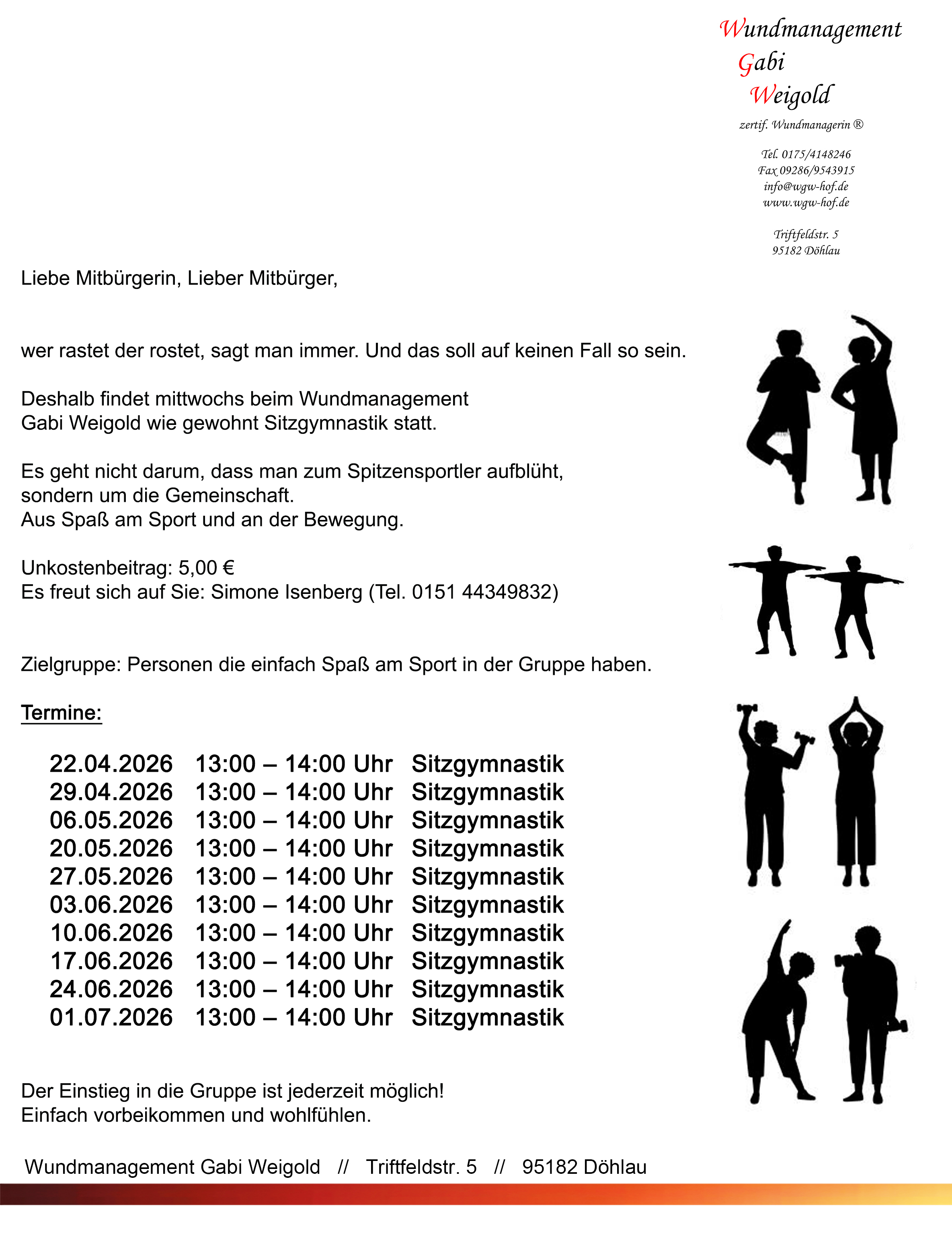 Sitzgymnastiktermine von April bis Juli 2026